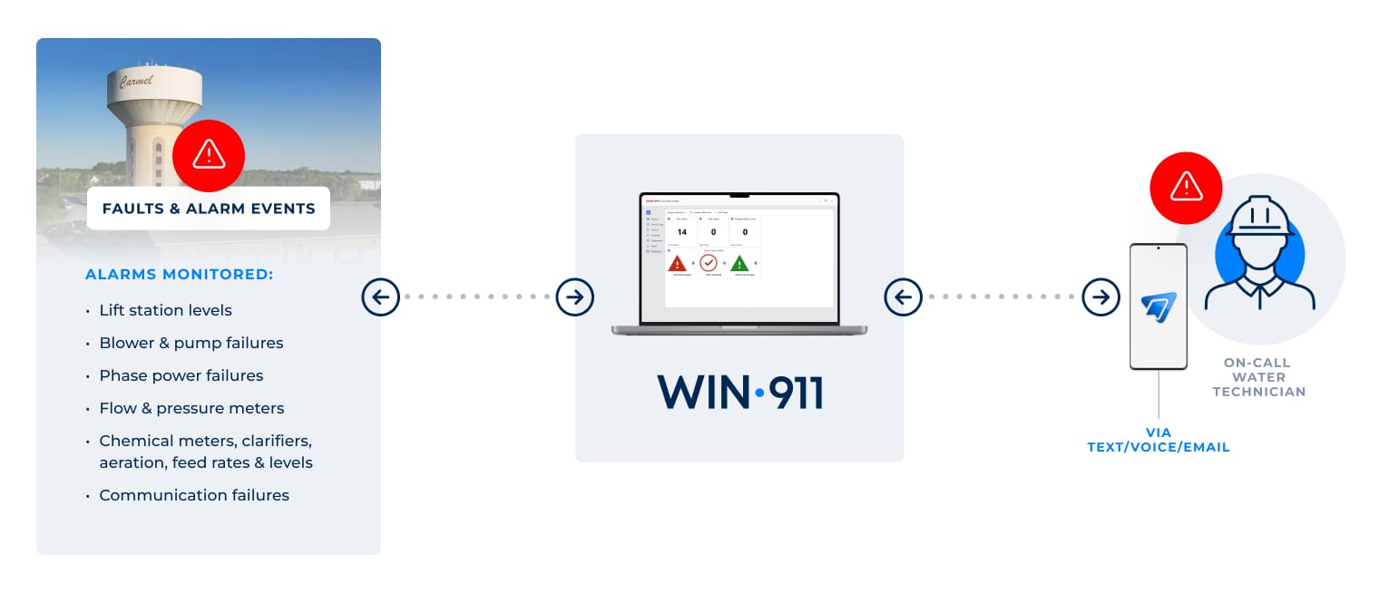 Kevin Buhmann, a Wastewater Electronic Technician for the city says that WIN-911’s flexible scheduling and escalation engine was a key to relieving overlap and confusion when it came to alarm response. “It works great for grouping alarms for both in-plant and off-site staff, and accommodating our changing shifts and schedules.”