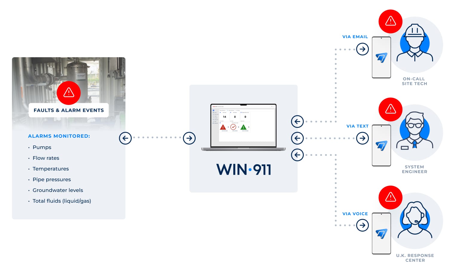 When an Alarm Occurs, SmartSights WIN-911 Sends Alerts via Text, Email, or Phone to the Right PPerson at the Right Time, Enabling Faster Response and Reduced Downtime