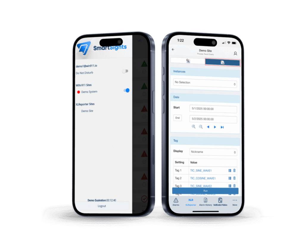 SmartSights Mobile extends operational visibility beyond the control room with an intuitive iOS and Android app. Stay informed with WIN-911 push notifications and access XLReporter reports from anywhere.