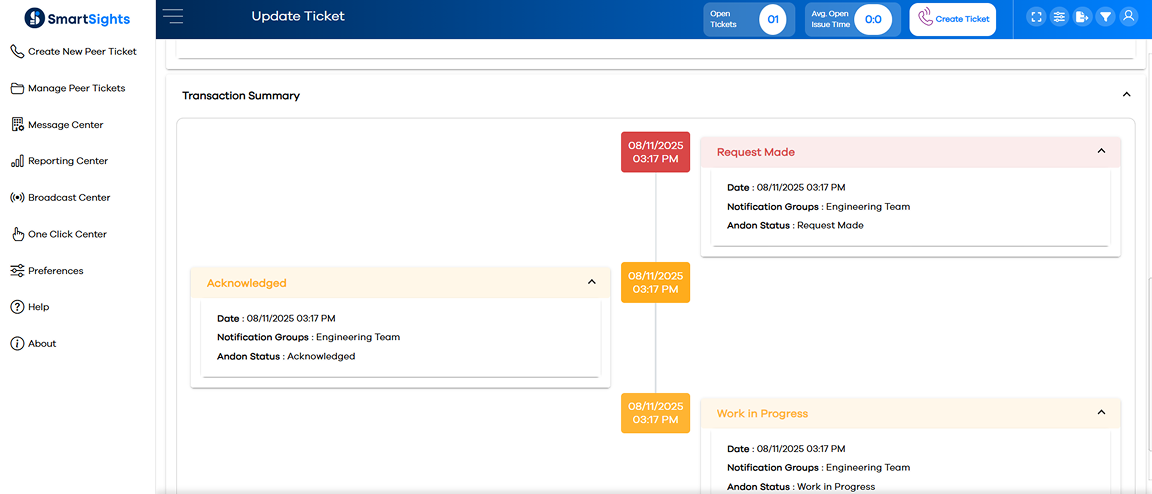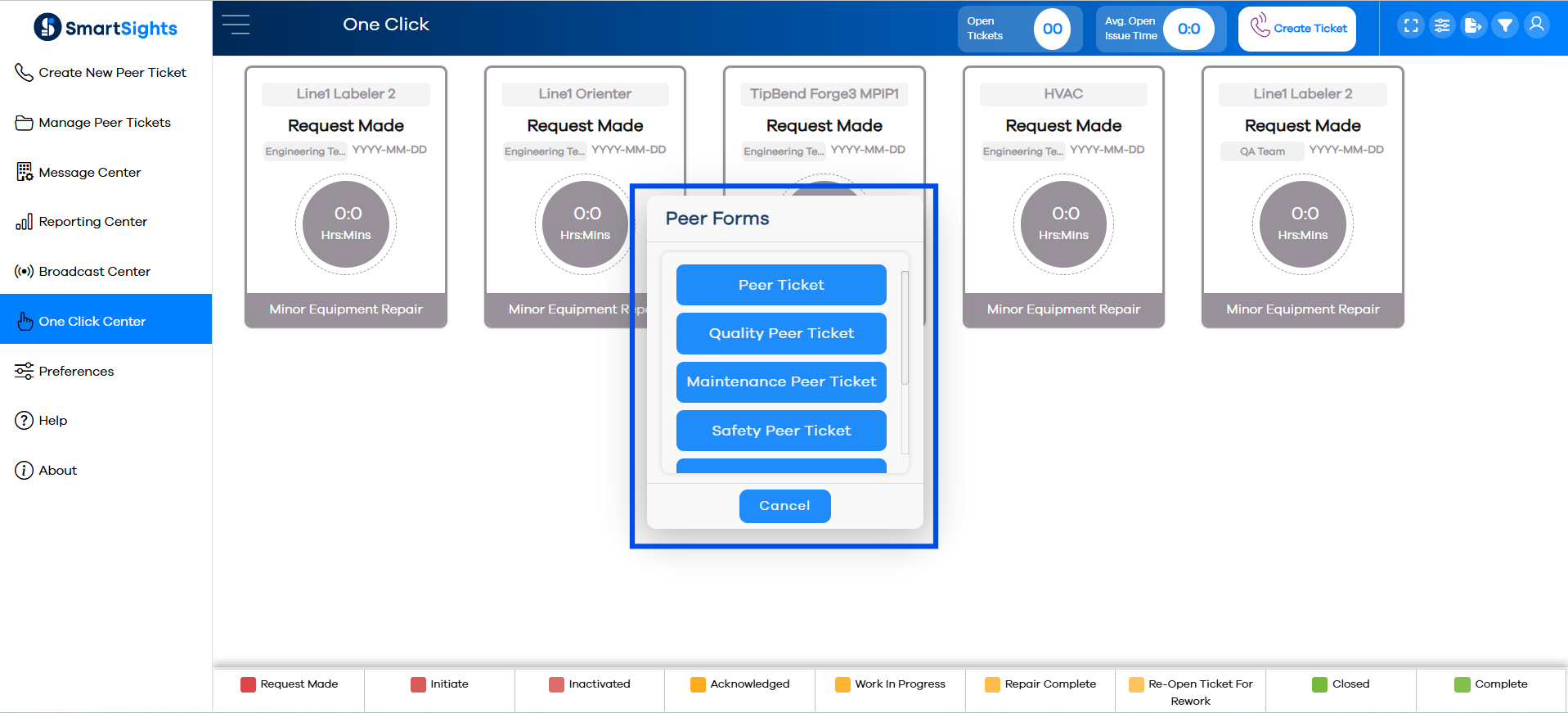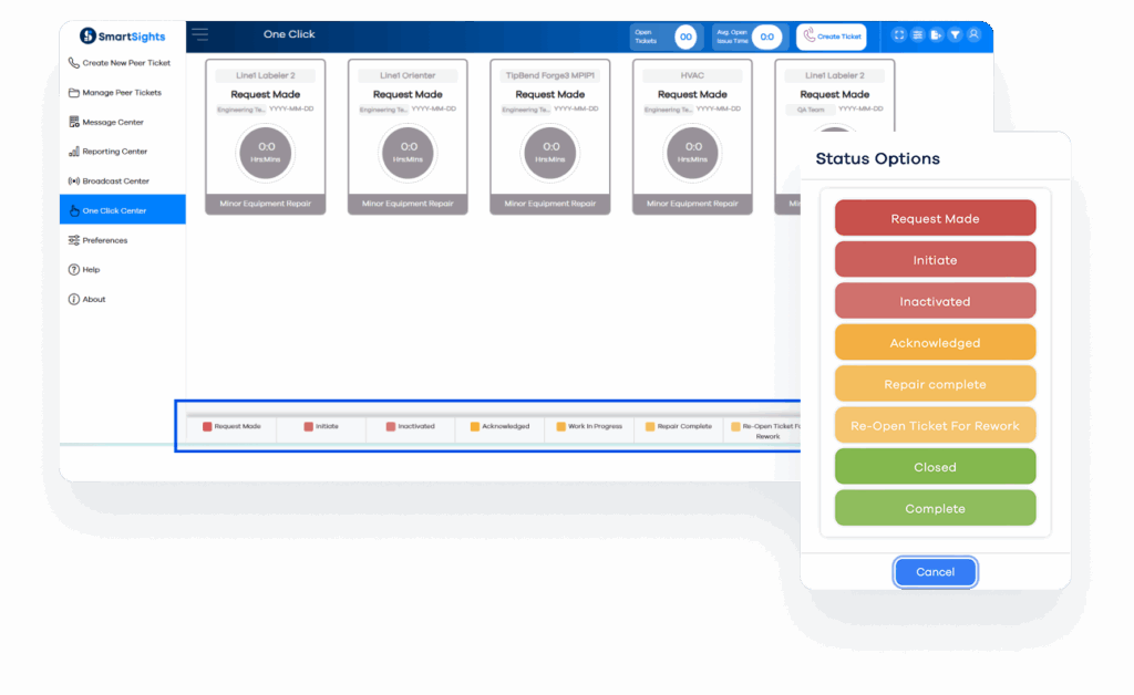 Peer’s message center allows tickets to be created, viewed, and updated easily. Data by line, area, or plant can be accessed from anywhere.